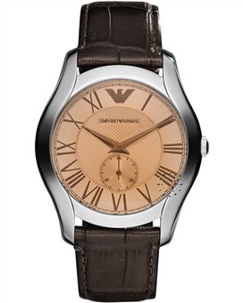 Kομψό και ευκολοφόρετο ωρολόι από ανοξείδωτο ατσάλι και καφέ δέρμα του οίκου Emporio Armani.