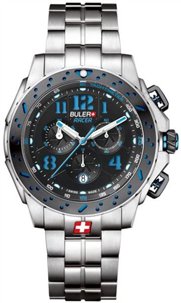 Buler ρολόι ανδρικό της σειράς Racer, χρονογράφος από ανοξείδωτο ατσάλι με μπρασελέ, μαύρο καντράν μπλε λεπτομέρειες σε σπορ design, ιδανικό για επίσημες και casual εμφανίσεις!