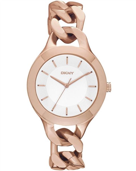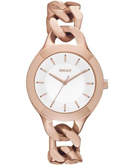 Ένα μοντέρνο, γυναικείο ρολόι, κατασκευασμένο από την εταιρία DKNY. Η κάσα είναι φτιαγμένη από επιχρυσωμένο ανοξείδωτο ατσάλι και βαμμένη σε ροζ χρώμα. Το καντράν είναι ανάγλυφο, σε λευκό χρώμα, με ροζ επιχρυσωμένους δείκτες και σημεία. Το πιάσιμο είναι μπρασελέ, από επιχρυσωμένο ανοξείδωτο ατσάλι, σε ροζ χρώμα.
