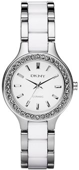 Ένα μοντέρνο, γυναικείο ρολόι, κατασκευασμένο από την εταιρία DKNY. Η κάσα είναι φτιαγμένη από ανοξείδωτο ατσάλι σε ασημί χρώμα. Το καντράν είναι ανάγλυφο, σε λευκό χρώμα.Το πιάσιμο είναι μπρασελέ, από ανοξείδωτο ατσάλι και κεραμικό σε ασημί και λευκό χρώμα.