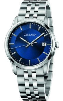 Ανδρικό ρολόι Calvin Klein Ελβετικής κατασκευής από ανοξείδωτο ατσάλι με μπλε καντράν και μπρασελέ.
