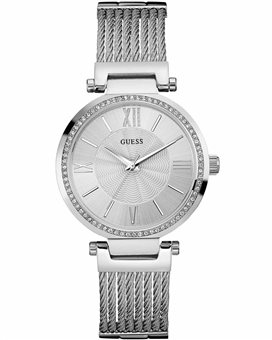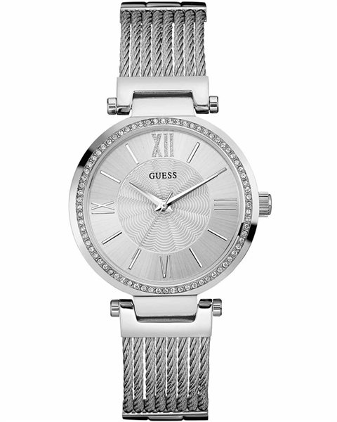Μοντέρνο και ιδιαίτερα εντυπωσιακό ρολόι από τον οίκο Guess από ανοξείδωτο ατσάλι με ασημί καντράν
