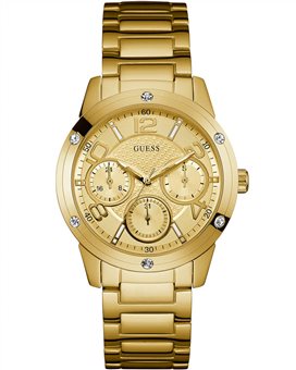Εντυπωσιακό ρολόι της Guess από χρυσό ανοξείδωτο ατσάλι με χρυσό καντράν