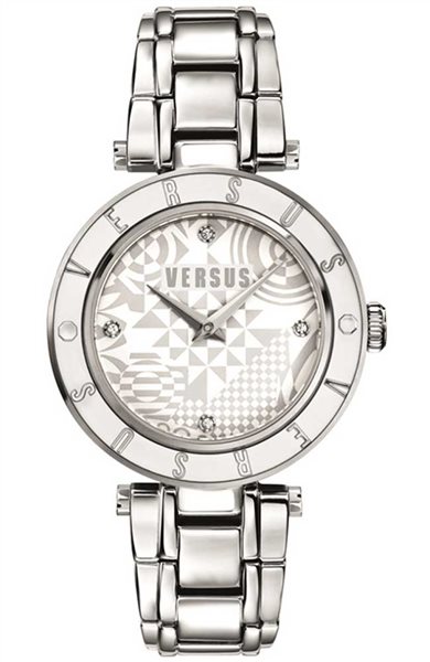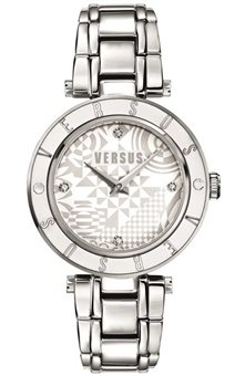 Γυναικείο ρολόι Versus by Versace από ανοξείδωτο ατσάλι με λευκό καντράν, πέτρες ζιργκόν και μπρασελέ.