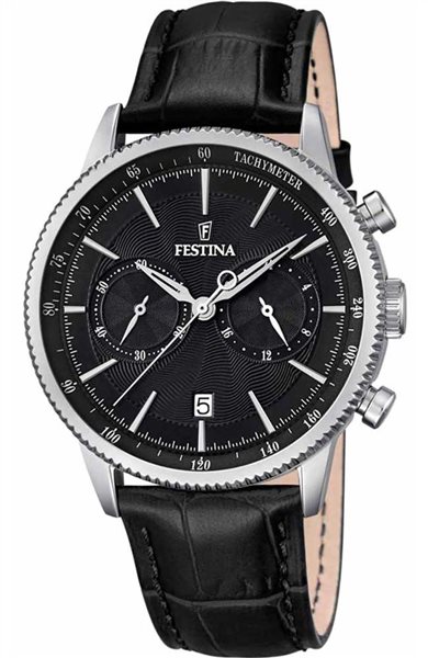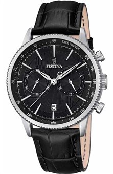 Ανδρικό ρολόι Festina από ανοξείδωτο ατσάλι με λευκό καντράν και καφέ δερμάτινο λουράκι.