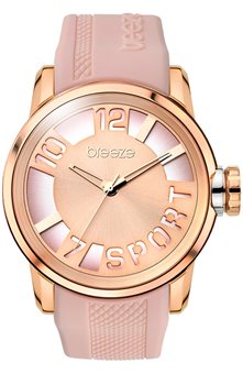 Γυναικείο ρολόι χειρός Breeze από ροζ επιχρυσωμένο ανοξείδωτο ατσάλι με ροζ χρυσό καντράν και ροζ καουτσούκ λουράκι
