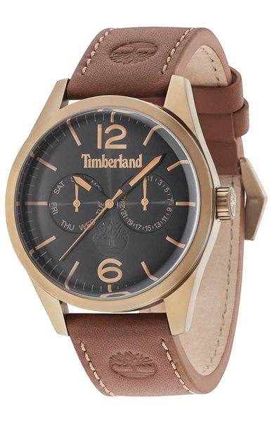 Ανδρικό ρολόι χειρός Timberland από ανοξείδωτο ατσάλι με μαύρο καντράν και καφέ δερμάτινο λουράκι