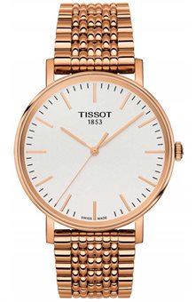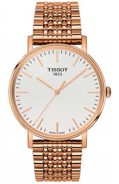 Γυναικείο ρολόι Tissot Ελβετικής κατασκευής από ροζ επιχρυσωμένο ανοξείδωτο ατσάλι με ασημί καντράν και μπρασελέ.