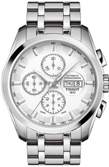 Ανδρικό Ρολόι χρονογράφος Tissot Ελβετικής κατασκευής από ανοξείδωτο ατσάλι με λευκό καντράν και μπρασελέ.