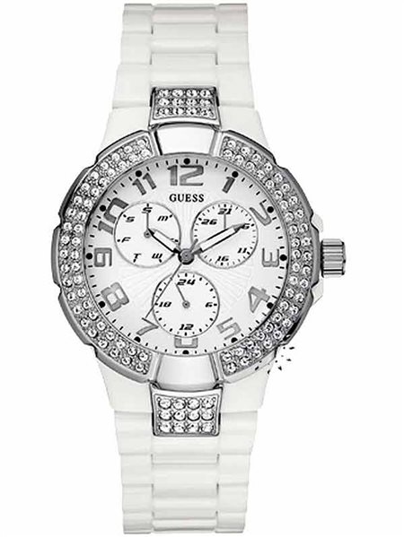 Από τη Guess ένα όμορφο και ευκολοφόρετο ωρολόι από Ανοξείδωτο ατσάλι και λευκό πολυκαρβονικό.