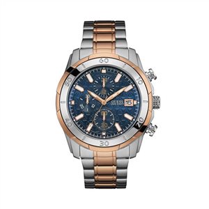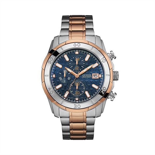 Ανδρικό ρολόι Χρονογράφος GUESS από ανοξείδωτο ατσάλι με μπλε καντράν και δίχρωμο μπρασελέ